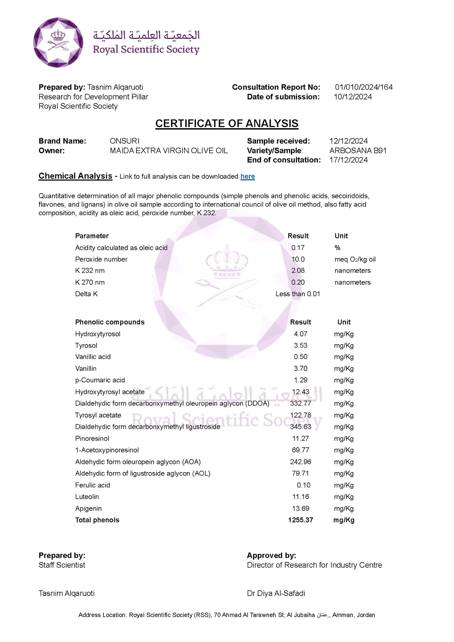Every drop meets the coveted Ultra-Premium standard — the highest benchmark for extra virgin olive oil worldwide. With <0.3% acidity, ONSURI oils are pressed only from the finest olives, ensuring purity, freshness, and superior taste.